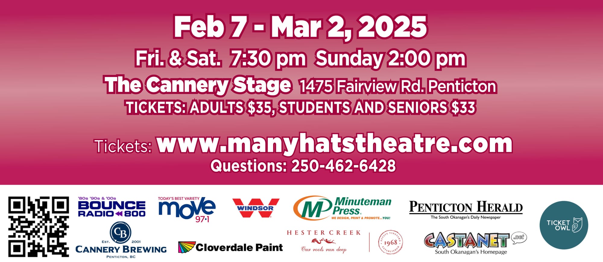 This delightful play will run from February 7 to March 2, 2025. Friday and Saturday evenings the show begins at 7:30 pm and Sunday Matinee begins at 2:00 pm.